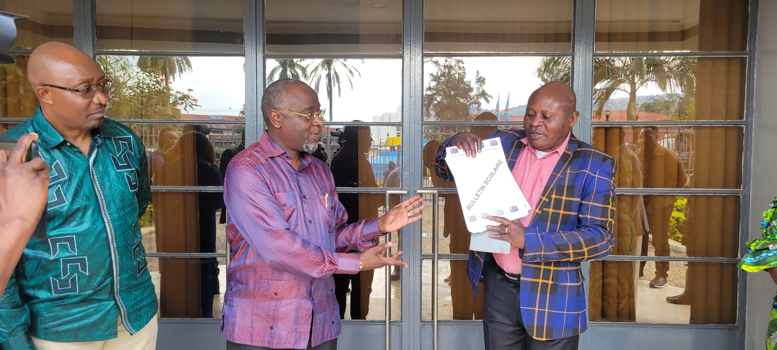 Au nom de l’AFC-M23, le Gouverneur de Province Patrick Busu Bwa Ngwi Nshombo a remis officiellement ce mardi 07 avril 2026 le premier lot des 300 000 bulletins aux responsables de l’enseignement de la province éducationnelle Sud-Kivu/1, notamment le PROVED Léon Musagi et Madame Chantal Cirengereza, l’IPP a.i, les bulletins originaux imprimés à Goma, chef-lieu des institutions du M23.